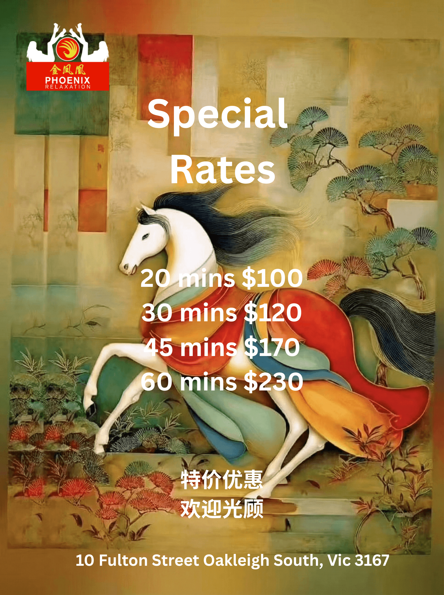 Let your body take charge at Phoenix Relaxation, with our revamped environment and management to maximise your physical enjoyment. In the heart of Oakleigh, next to Clayton and Huntingdale. Enjoy a luring pleasure escorts service at Phoenix with warmth and unstoppable fun. Read some of the reviews from our customers on Punter Planet (and Catchgod for Chinese). We are waiting for you.